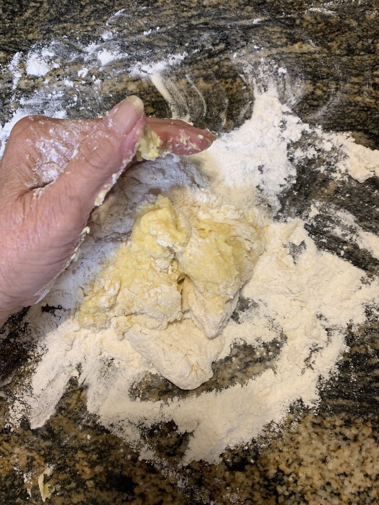 Wrap in plastic wrap and chill for 30 minutes in the fridge. Roll to about 1/8” thick then cut in strips about 1/4” wide. If not using right away, you can hang the strips to dry then keep in airtight container to use later.