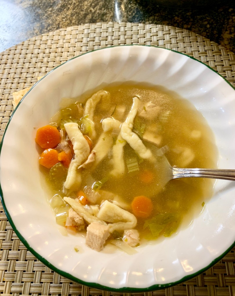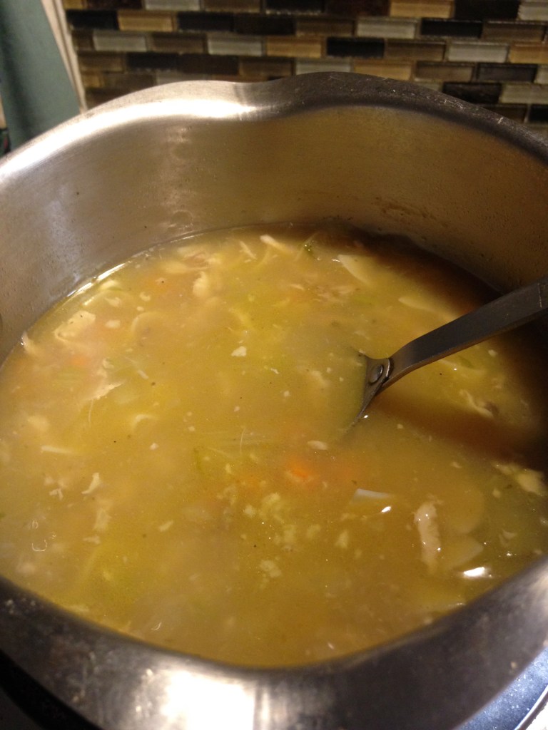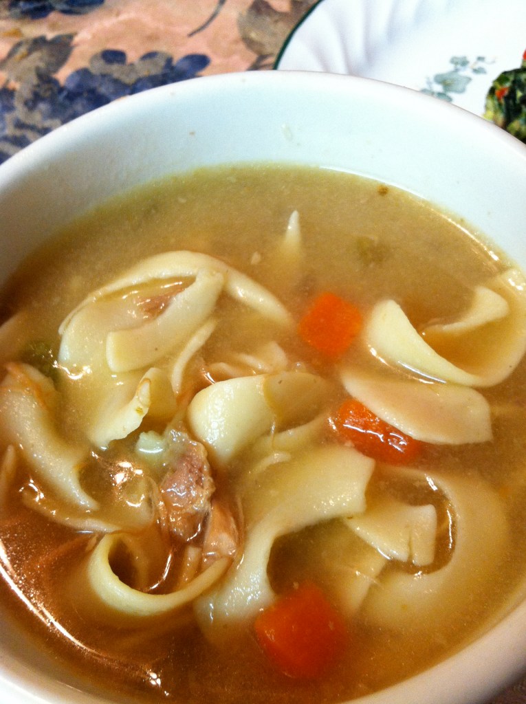 Omit the noodles for plain chicken soup following the same recipe as above. Add uncooked rice for variation and cook the rice as you would as the noodles.