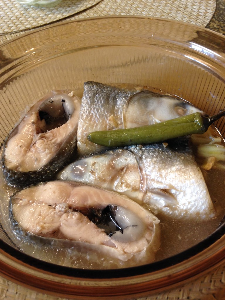 Paksiw na isda (fish) is one of my favorite dishes when I was growing up and it still is. It is just sad that I can’t get the same fish that I liked for it except bangus (milkfish) for this dish to cook here. In the Philippines, my favorite fish for paksiw was hasa-hasa. I have not found them here even frozen. There is a fish that looks like it called Indian Mackerel but it is not the same at all. The smaller the fish, the better as long as they are fresh but here in the Gulf the variety of fish we catch in the bay is limited. Maybe someday….