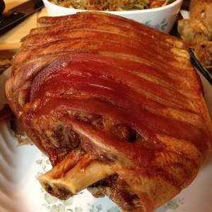 Because it is slow cooked the meat is so tender it is almost like pulled pork and the crispy rind is like cracklings. This is good with store-bought Filipino sauce for lechon from the Asian stores or you can make your own.