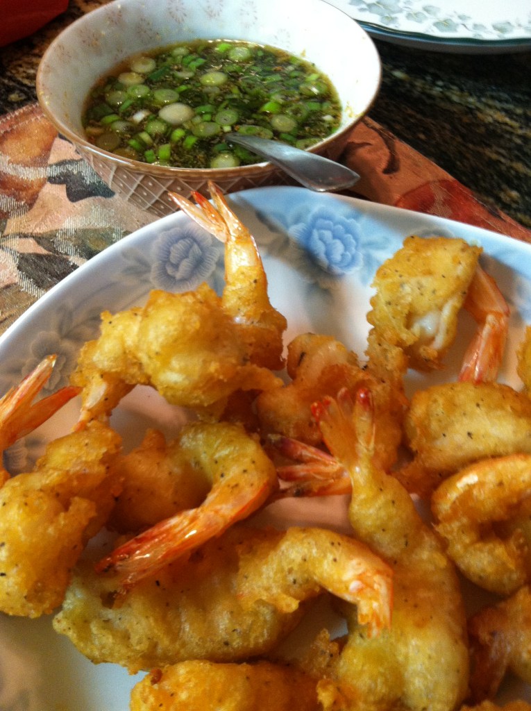For the dip I made a small bowl of vinegar, water, Patis, Soy Sauce, salt and pepper with thinly sliced green onions, chopped garlic and a little grated ginger root. Or you can use Sweet and Sour sauce.