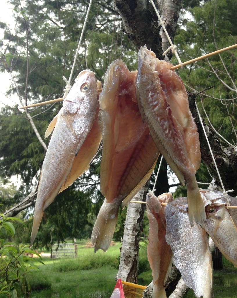 I caught plenty of small croakers when we went fishing so I thought I would try my hands on making daing. After cleaning and butterflying these fishes I soaked them in brine overnight.