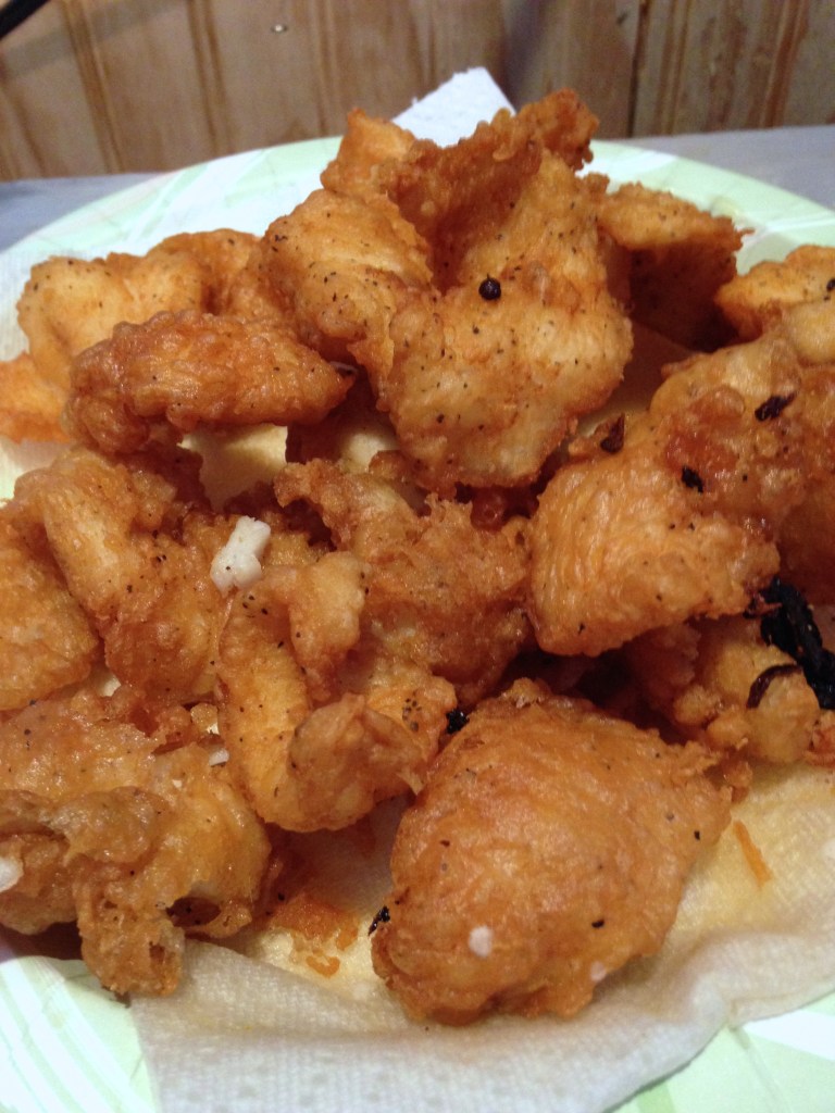 The batter on this fish is very light and crunchy. I used flounder fillets that are sliced in smaller pieces but any kind of fish can also be cooked this way. If the fish fillets you have are thick, slice them thinner.