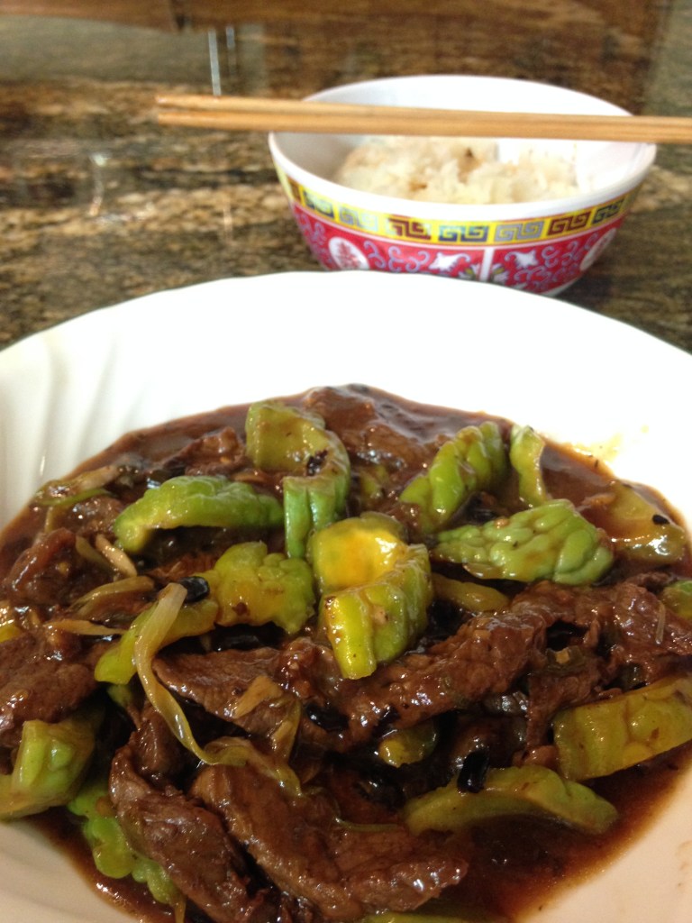It is a very popular dish in Chinese restaurants in the Philippines. It is comparable to the popular Chinese dish, Beef with Broccoli here in the States. In fact, just replace the broccoli with bitter melon and you got it!