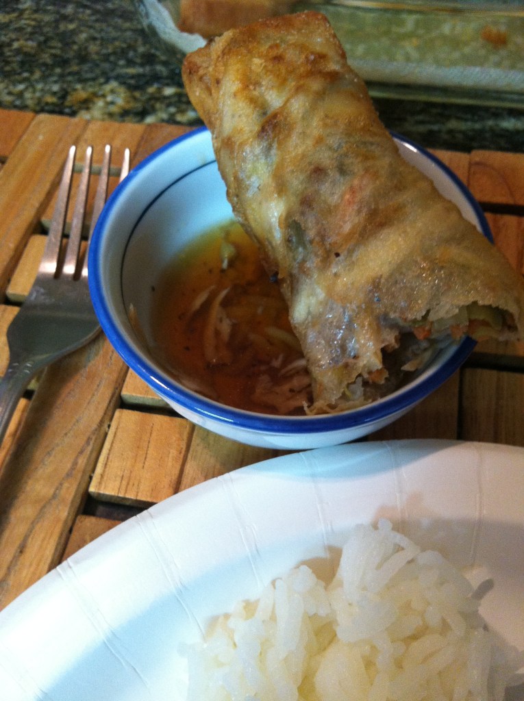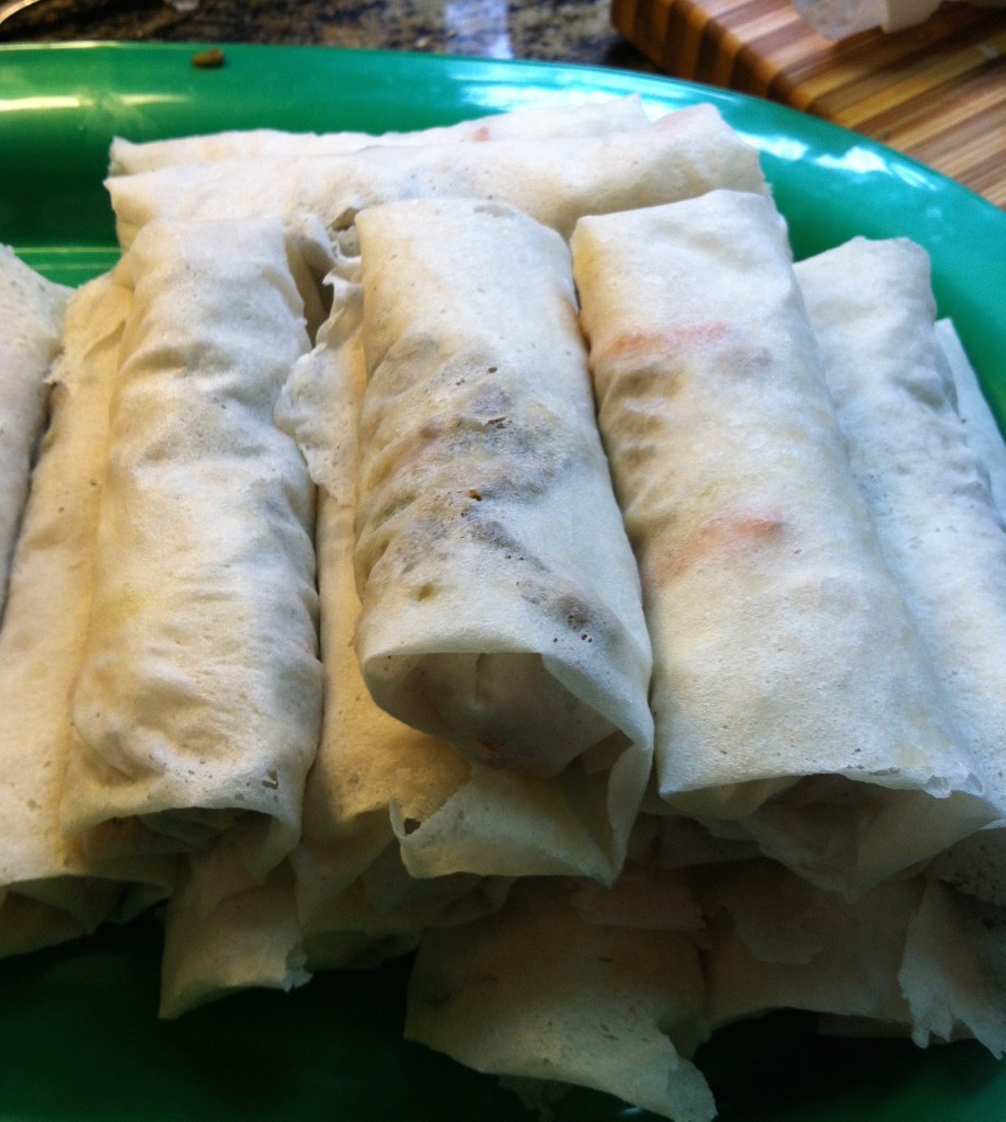 If you are a novice in wrapping eggrolls or burritos, do not despair or get discouraged if you mess up some because some will bust open before you get to the end of the wrap. You can double the wrap or you can start over with a fresh wrapper. But do not discard the torn wrappers because you can use them too.