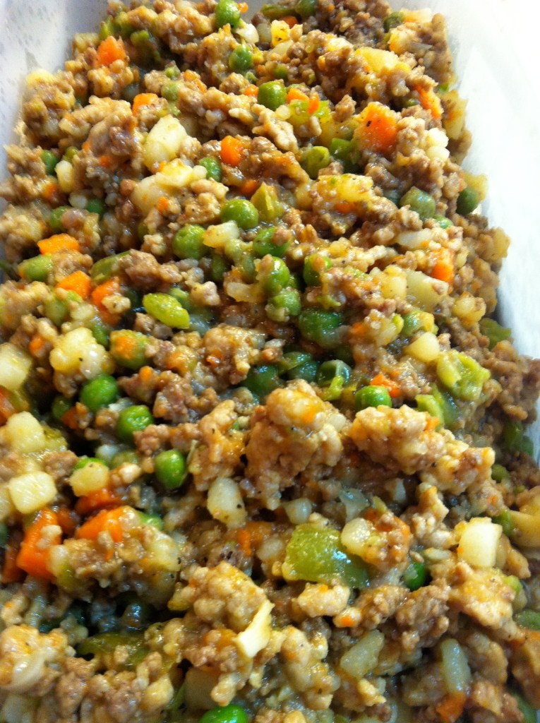 Heat a large skillet and brown the meat. Drain if necessary and transfer the meat to a bowl and set aside. Add the 1 TBS oil in the skillet and sauté the garlic until fragrant and then the onions and sauté until soft. Put the meat back and add ¼ cup water, and fish sauce if using. Simmer for a couple of minutes and add the bay leaf, chicken or beef bouillon and the bell pepper. Simmer for another minute and add the potatoes and carrots. Stir occasionally to prevent burning and simmer covered until the potatoes are almost done then drop in the peas. Taste, adjust the seasonings, and add a couple of dashes of black pepper also MSG if desired. When the potatoes and the peas are done, turn off the heat and transfer to a container and when it is cool enough, keep in the refrigerator until ready to put in the crust.