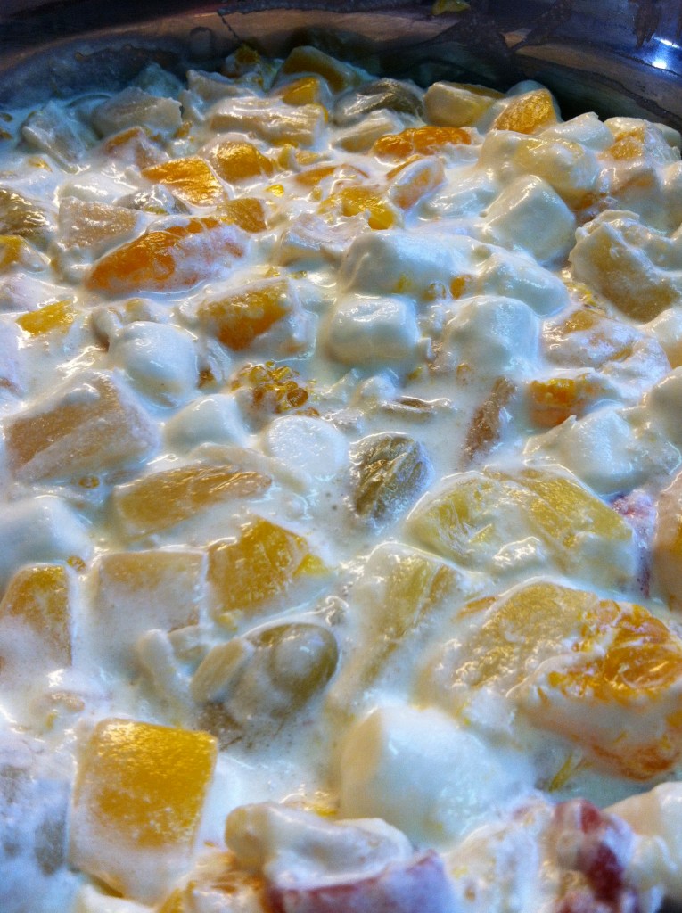 There are many fruit salad recipes floating around but this one was my own concoction and some may even call it Tropical Fruit Salad. Nevertheless, my kids always ask for this on holidays or when there is a big get together.