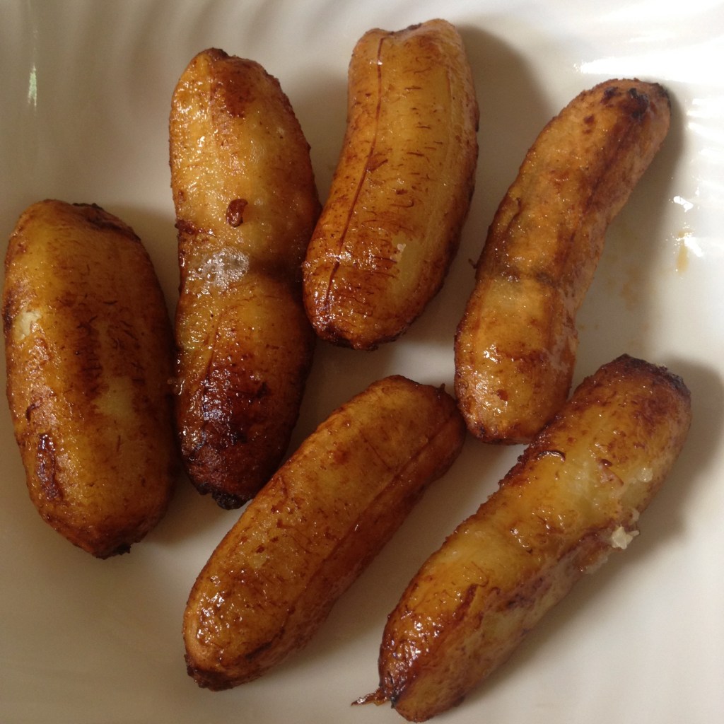 Bananas (Saba, or Plantain) are rolled in sugar then fried until brown or until the sugar is caramelized but not burned.