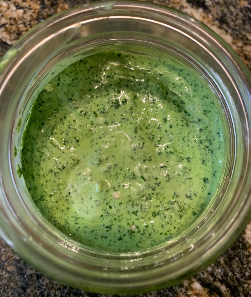I thought I would like to cook chicken tonight and I opted to bake some legs and thighs. But my taste buds are looking for something to go with them. I remembered I had roasted chicken pieces with something sour with cilantro many years ago when we were invited a few times for dinner by friends from the Middle East. She was Lebanese and he was Turkish. I suppose this is the same as that condiment they served with the chicken.