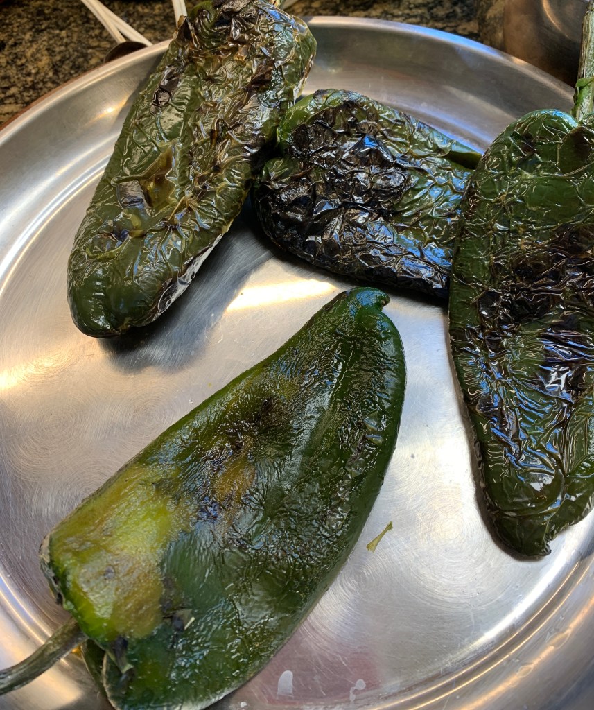 Add the 1 can Poblano condensed soup and ½ can of water. Add the chicken bouillon cube and let it simmer until the chicken bouillon is dissolved. Drop in the poblanos and the tamales. Add the cumin and heat through stirring occasionally to prevent sticking at the bottom. Taste and add salt if needed. Transfer to a heat proof dish then spread the grated cheese on the top. Let the cheese melt or heat briefly in the microwave oven until the cheese melts. Serve warm with corn tortillas. Garnish with avocado slices, sour cream and cilantro.