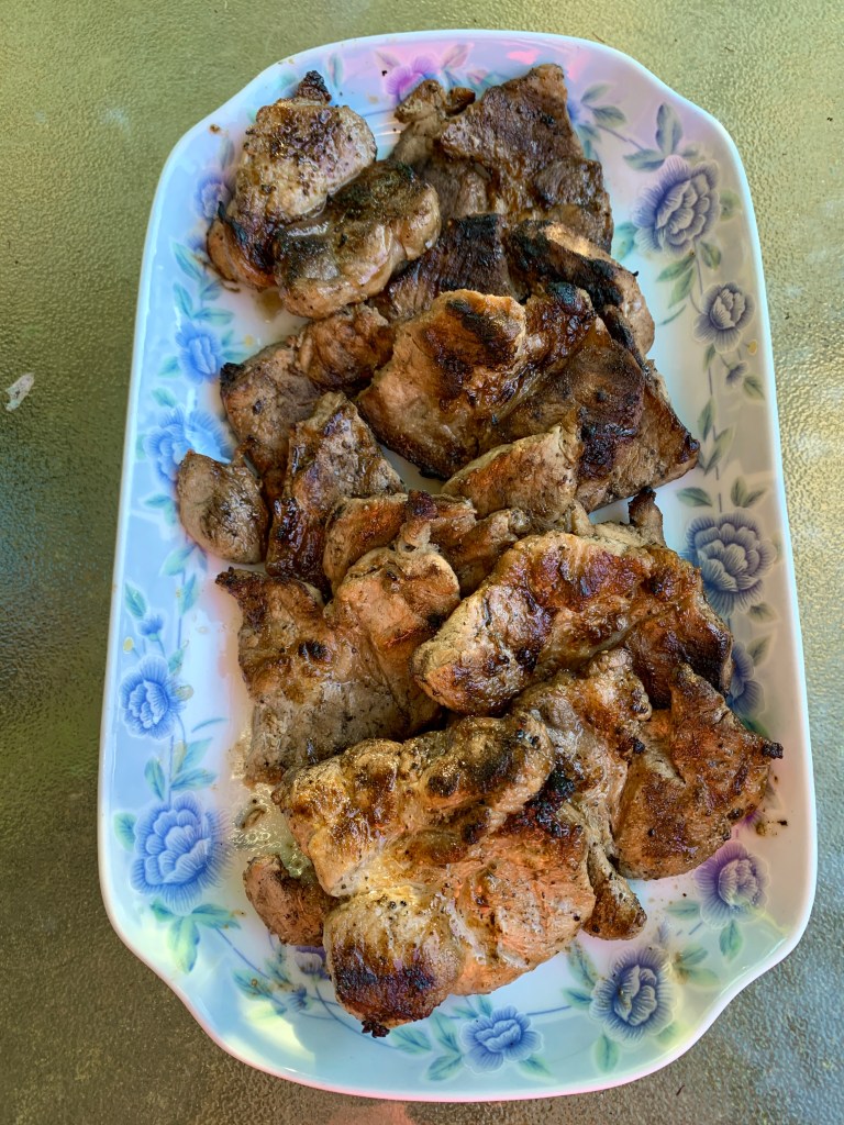 I was hoping my husband would like them cooked this way and eat well. He was still convalescing from a surgery and didn’t have any appetite lately. Also, I wasn’t sure if they would be tender after they were grilled. I’ve never tried cooking pork roast this way before so, this was a trial and hoped It would not fail me.